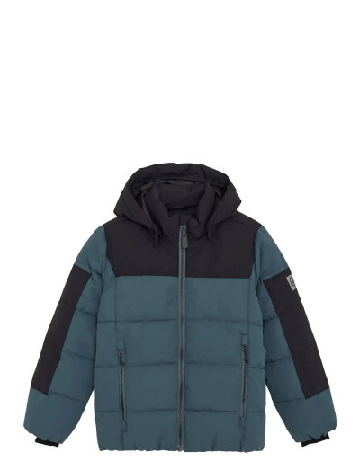 VandtætWarm quilted snowjacket for your child in durable material. The material is breathable, windproof and waterproof, so your child can stay out in the rain, snow and wind without getting cold and wet. Tested wear resistance of 20.000 rubs, water column pressure of 8,000 mm. and breathability of 3,000g.The jacket closes with a quality zipper at the front. Good inside wind pole. Chin protectors make sure that the zipper feels soft under the chin. The jacket has detachable hood and outside zip pockets. Reflective details on the back of the jacket and on the sleeve. Inner cuffs with hole for thumb. It has a name tag inside. The snowjacket is made of recycled material. Coated with BIONIC FINISH® ECO. Certified acc. to GRS - Made with more than 50% Recycled Material
