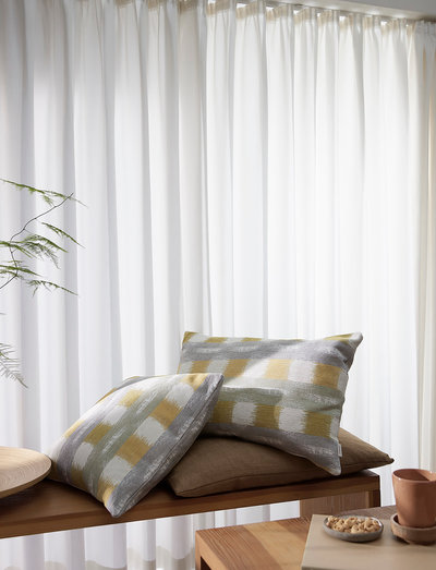 Ikat er en trendy fortolkning af 70'ernes design. Vævet i den blødeste tekstur med abstrakte tern, inspireret af indfarvningsmetoden af samme navn. Ikat pudens skønne forårsfarver giver et friskt pust til dit hjem. Mix og match Ikat med Compliments basic puder og giv din stue et trendy twist.
