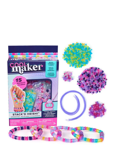 Lav endnu flere flotte heishi-armbånd på et øjeblik med Cool Maker Stack’d Heishi Bracelet Studio og Expansion Pack! Dette refill-sæt indeholder alt, hvad du skal bruge for at lave 10 ekstra armbånd med dit Stack’d Heishi Bracelet Studio (sælges separat). Du får 1300 pastelfarvede heishi-perler, 40 specialperler, snore og låse – klar til at designe dine egne unikke armbånd! Brug måleguiden i studiet til at finde din håndledsstørrelse, og match symbolet med det på perlepinden for at få den perfekte pasform. Saml perlerne op med pinden og se dit design stablesig indeni – slip dem derefter ned i studiet, direkte på snoren. Stik håndleddet ind i studiet og tryk på knappen – magisk! – armbåndet lukker helt af sig selv! Cool Maker-sættet sætter gang i fantasien, når du designer dine egne armbåndsstakke og deler dem med dine BFFs. Perfekt til sleepovers, fester, regnvejrsdage eller bare fordi! Lav, brug og del dine armbånd med Cool Maker Stack’d Heishi Expansion Pack!