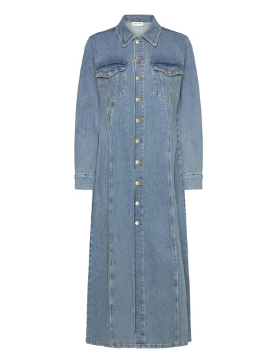 Denne kjole er fremstillet i premium denim og har knaplukning foran og lange ærmer med manchetter. Den har også en klassisk krave, brystlommer og smigrende sømdetaljer, der giver et stilfuldt touch.