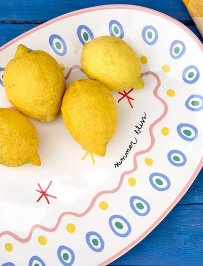 Et smukt fad fra Summer Bliss-kollektionen fra det portugisiske mærke Costa Nova! Fadet er håndlavet i stentøj i smukke Portugal. Fadet tåler frost, opvaskemaskine og mikroovn. Da alle fade er håndlavede, er hvert produkt unikt med små variationer i glasur og farve. I Summer Bliss-kollektionen findes alt fra tallerkener til kopper og kander! Bland og match i denne smukke serie inspireret af den italienske sommer.