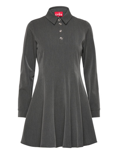 Elegant silhuet definerer denne langærmede kjole, hvilket gør den til en alsidig tilføjelse til enhver garderobe. Med en krave og knaplukning foran tilbyder kjolen en blanding af klassiske og moderne stilarter. Den udstrakte nederdel tilføjer et strejf af femininitet og sikrer en flatterende pasform til forskellige kropstyper.