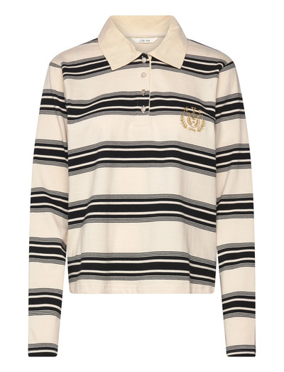 Med en klassisk polokrave og lange ærmer giver denne stribede top et raffineret, men afslappet look. Designet er forbedret med et subtilt emblem på brystet, hvilket tilføjer et strejf af distinktion til denne alsidige beklædningsgenstand.