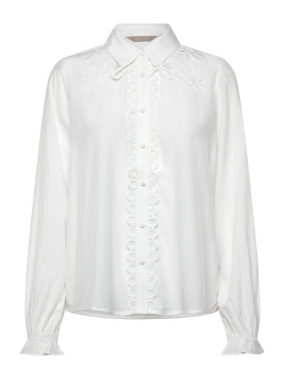 Delikate detaljer løfter denne langærmede skjorte og gør den til et enestående stykke tøj. Med subtile pynt omkring kraven og ned langs knaplukningen tilføjer den et strejf af elegance til ethvert outfit. De let rynkede manchetter fuldender looket.