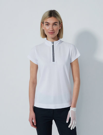 KIM CAP S HALF ZIP er en stilfuld og funktionel poloshirt fra Daily Sports. Den har en høj halsudskæring og korte ærmer, hvilket gør den perfekt til en række aktiviteter. Den halve lynlåslukning giver mulighed for nem ventilation, mens den stribede detalje tilføjer et strejf af stil. Denne poloshirt er lavet af materialer af høj kvalitet, der er behagelige og åndbare, hvilket gør den ideel til både afslappet og atletisk brug.