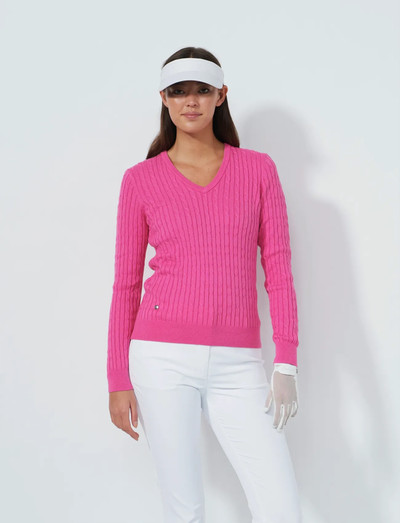 Et klassisk kabelstrikdesign definerer denne V-hals pullover, der tilbyder både varme og tidløs stil. Den fine strikkonstruktion sikrer en behagelig pasform, hvilket gør den ideel til lagdeling eller til at bære alene.