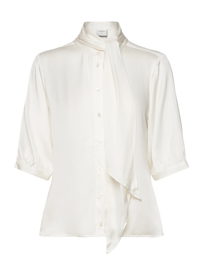 Denne bluse er fremstillet af luksuriøs, sandvasket stretch-silke og har en raffineret silhuet. Den har et aftageligt silketørklæde, mellemlange ærmer med fine rynker og et kontrastfarvet georgette-stof på bagsiden.