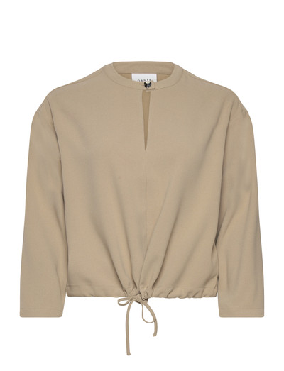 Denne afslappede top med rund hals løftes af en dekorativ knap og V-halsudskæring. De mellemlange ærmer har stilfulde læg, mens snøre forneden giver mulighed for en justerbar pasform. Denne top er fremstillet af 100 % genbrugsmaterialer og er ideel som en del af et sæt.