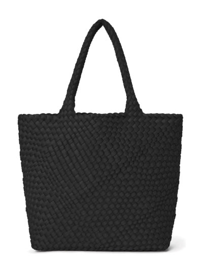 Denne rummelige taske er håndflettet i opgraderet neopren og kombinerer et blødt og struktureret udtryk med praktiske funktioner. Det åbne hovedrum og faste bund giver nem adgang og god stabilitet. Kan bæres som skuldertaske eller stor håndtaske – ideel til både hverdag og arbejde med plads til computer og mere.