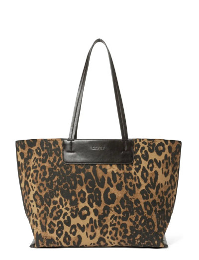 Skuldertaske i bomuldstwill med leopardmønster i et klassisk, elegant design med flere detaljer og fast bund i imiteret læder. Tasken har indvendige lommer og en rem med D-krog til nøgler – ideel til hverdag og arbejde.