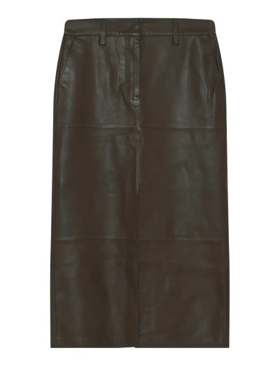 Denne nederdel er fremstillet af smidigt læder og har en elegant, moderne silhuet. Det panelopdelte design tilføjer et visuelt interessant element, mens det klassiske snit sikrer alsidighed. Brug den med en bluse for et poleret look.
