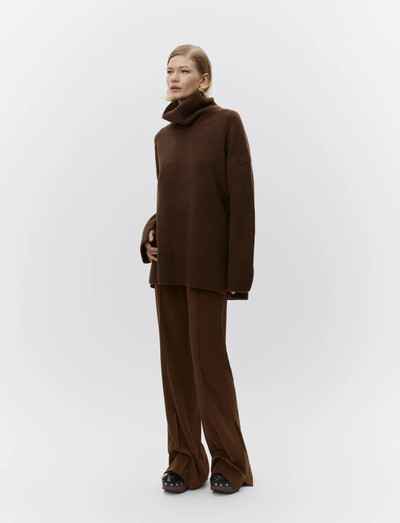 Denne striktrøje med rullekrave har en afslappet silhuet, der giver både komfort og stil. Den oversized pasform og ribdetaljerne ved kanten og manchetterne tilføjer et strejf af tekstur til dette hyggelige stykke.