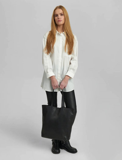 Denne rummelige taske er fremstillet af blødt kalveskind og kombinerer stil og funktionalitet på bedste vis. Den er mere end bare et tilbehør; den er en uundværlig ledsager til den moderne kvinde, der sætter pris på kvalitet og tidløst design. Det rummelige design giver plads til alle dine vigtigste ejendele, mens den mindre lynlåslomme bagpå sørger for, at dine værdigenstande er sikre og let tilgængelige. Perfekt til både hverdagens udfordringer og weekendture.