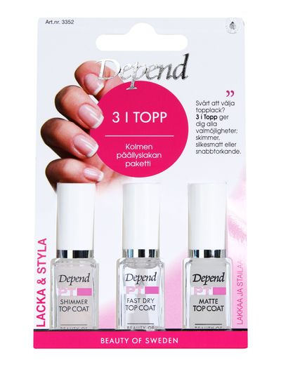 Try combining them and creating fantastic effects. Top coat provides protection and helps your nail polish to last longer. For best results, start with Depend Grip & Protect Base Coat.
