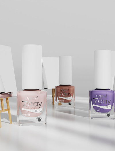 Depend 7day er et neglelakssystem til dig, der ønsker en neglelak med superglans, holdbarhed i topklasse og en "gel-følelse". denne hybridformel holder i op til en uge, er nem at påføre og fjernes nemt med depend neglelakfjerner. depend 7day er en 4-trins behandling. dette startsæt indeholder de basisprodukter, du altid har brug for, samt din valgte farve (trin 3). der er ikke brug for en led/uv-lampe - dette neglelakssystem hærder i normalt dagslys eller elektrisk lys.