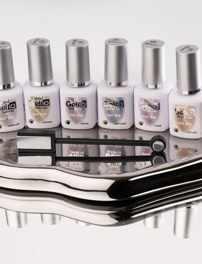 Giv dine negle en magisk dybde med Gel iQ Effects Cat Eye. Brug magneten og se mønstre og forandringer opstå – hvert strøg skaber et nyt look. Leg dig frem med forskelligt farvede Gel iQ-nuancer som bund, og oplev, hvordan lys og vinkel forvandler effekten til noget helt unikt.