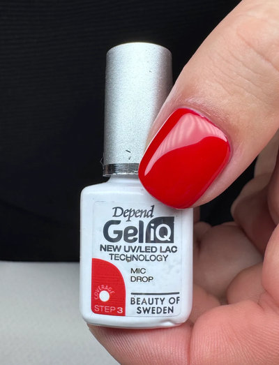 3. Farve: Påfør et tyndt lag Gel iQ Farve. Hærd i 30 sekunder i UV/LED-lampen. Påfør herefter endnu et tyndt lag Gel iQ Farve, og hærd i 30 sekunder i UV/LED-lampen.