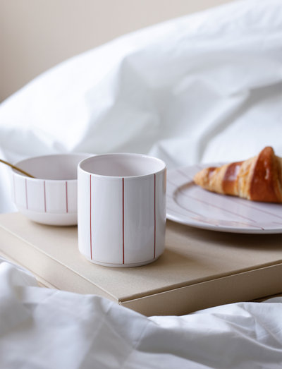 Kaffe og pyjamas er det perfekte match, og nu har du chancen for at iføre, ikke kun dig selv, men også din kaffe i det fineste pyjamas outfit. Pyjamas koppen er det ultimative førstevalg til din morgenkaffe eller aftente, og med sine delikate striber ser den vidunderlig fin ud på bordet og på køkkenhylden. Fås i pastel beige med striber i 3 forskellige farver: Midnight blue, tendril green og coral red.