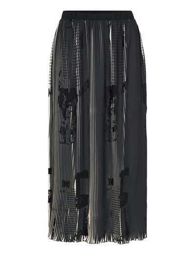 Denne nederdel har et grafisk print over det hele, hvilket giver et unikt og iøjnefaldende design. Den plisserede konstruktion tilføjer tekstur og bevægelse, hvilket gør den til et stilfuldt valg til forskellige lejligheder.