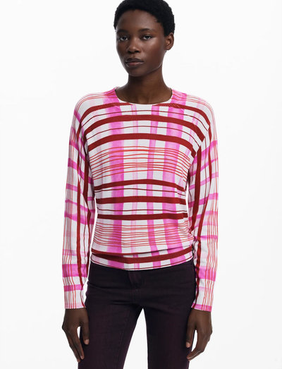 Denne strikkede pullover har en subtil ribbet tekstur og er et behageligt og stilfuldt valg til lag-på-lag. Det gennemgående ternede mønster tilføjer et visuelt interessant element, hvilket gør den til en alsidig beklædningsgenstand til forskellige outfits.