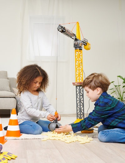 Give your child the feeling of being a construction worker with Dickie Toys Radio-controlled Mighty Crane! This impressive crane is equipped with a remote control that allows the child to control it in all directions - left, right, up, and down - as well as rotate 360 degrees to reach any spot. The crane also features a wrecking ball with a grabber function to handle the load realistically. With included accessories, your child can create exciting construction environments and simulate various tasks. Measuring at 110 cm, this radio-controlled crane is perfect for children aged 3 and up. Give your child the opportunity to explore and play with Dickie Toys Radio-controlled Mighty Crane and let their imagination soar!