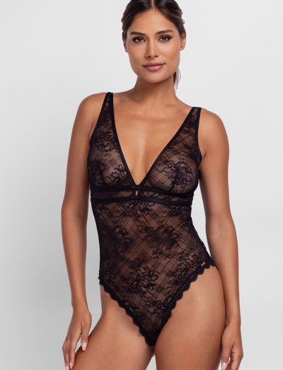 Delikat blonde giver dette stykke undertøj et romantisk udtryk. Den høje benskæring skaber en flatterende silhuet, perfekt under højtaljede bukser til en aften ude.