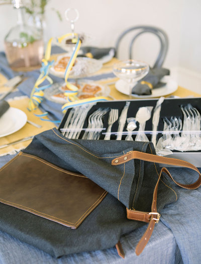 Forklæde i jeans med 1 lomme og PU-læderbånd 70*80 cm