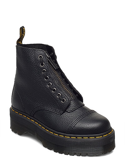 En chunky platform løfter disse snørestøvler, mens en lynlås foran tilføjer et strejf af edgy stil. Fuldendt med karakteristiske gule syninger giver disse støvler et markant look.