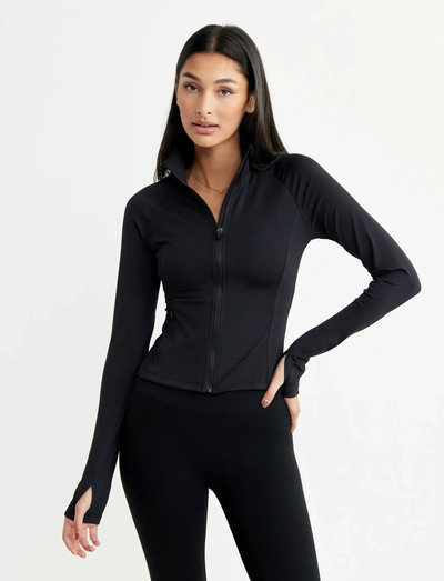 YogaDenne cardigan med lynlås er fremstillet i et let og utroligt blødt materiale, der både giver støtte og stil. Den har en praktisk lynlåsåbning og smarte huller til tommelfingrene, der øger komforten og funktionaliteten. Det åndbare materiale sikrer en glat og behagelig pasform.