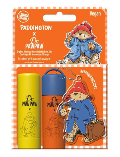 Dr.PAWPAWs Paddington™-inspirerede læbepomade-duo kombinerer den prisvindende, 100 % naturlige Original Balm i stickform med den lækre Orange Marmalade Lip Balm – det perfekte duo til ethvert eventyr. Fyldt med vores vigtigste ingredienser, PAWPAW-frugten (papaya), der er elsket for sine dybt nærende egenskaber, aloe vera, der hjælper med at berolige og lindre dine læber, ricinusolie og olivenolie, der er valgt for deres ekstra fugtgivende egenskaber. Med den medfølgende nøglering kan du tage dine Paddington-læbepomader med, uanset hvor dit næste eventyr fører dig hen.