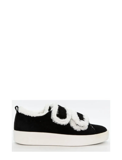 Træd ud i stil med disse sneakers i ruskind, designet med praktiske velcrostropper og en hyggelig syntetisk pelskant. Disse sko tilbyder både komfort og et moderigtigt udtryk.