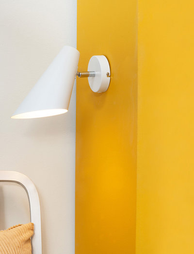 serien består foruden væglampen også af en gulv og bordlampe. findes som her i hvid metal samt i hvid metal. lampehovedet kan drejes i ønsket retning. afbryderen findes på toppen af lampehovedet. lampen leveres med 1,5m sort stofledning.