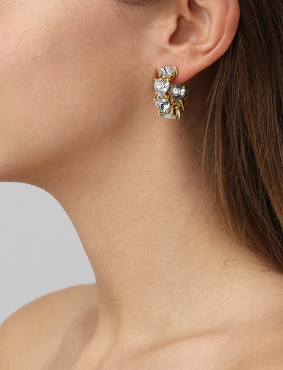HARDY - a richly decorated crystal hoop earring, appr. 25 mm in diamter. Note the setting of heartshaped crystals on front, creating a repetative look. Post made in surgical steel. Here shown in a cool mix of white crystals on gold toned finish. Nickel free Danish design. Free of cadmium, lead and nickel. A chic little number.