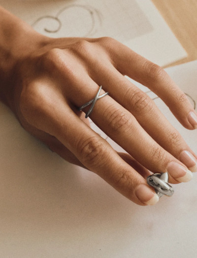 Med sit elegante, skulpturelle design er denne ring ideel til at skabe lagvise looks eller til at bære alene for et strejf af underspillet elegance. Den slanke profil i poleret rustfrit stål gør den til en alsidig tilføjelse til enhver smykkesamling. Nikkelfri og vandafvisende.