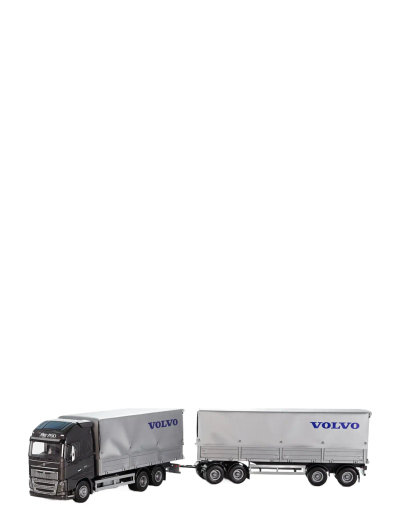 EMEK Volvo FH16 lastbil med trailer i sort. Den lange trailer giver plads til store læsseopgaver, perfekt til kreative legeøjeblikke.