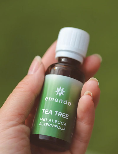Ægte 100% æterisk olie af tea tree (melaleuca alternifolia) i 10 ml flasker. antiseptisk og alsidig olie af tea tree er velegnet til hud- og hårpleje. emendos ægte 100% æteriske olier er velegnede til aromaterapi og oliebrændere. olierne er nemme at bruge og økonomiske.