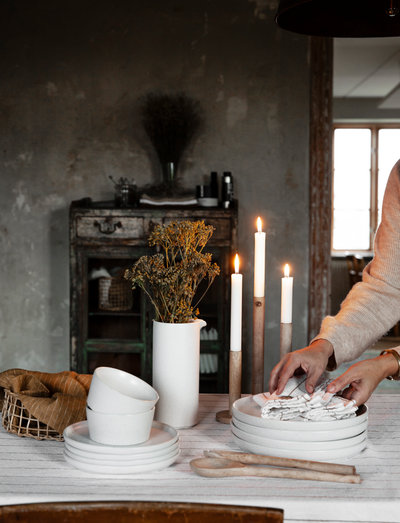 Ernst-kanden i stentøj er lige så fin til fest som til hverdagsbrug. Serien omfatter også middagstallerkener, små tallerkener, morgenmadsskåle, kaffekopper og tekrus.