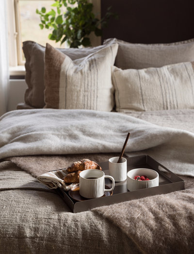 ERNST-bakke i metal, i den harmoniske farve muldvarp. Med sin rene form og afdæmpede farve er den perfekt både til servering og som en smuk base for dine personlige detaljer. En klassisk bakke, der skaber en følelse af orden og overblik, uanset om den bærer morgenmaden på sengen eller aftenkaffen i sofaen.