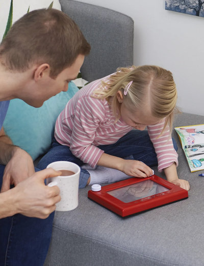 Sammen tegner vi os vej til en bedre fremtid med Etch A Sketch Classic 2.0, det originale, magiske skærmtegnelegetøj til børn i alderen 3+. Dette klassiske legetøj, der nu er fremstillet af 86 % genbrugsplast, har glædet og inspireret kreativiteten i mere end 60 år og givet både voksne og børn mulighed for at udtrykke sig gennem tegning og design. Etch A Sketch har en magisk skærm, der rystes for at slette, og som byder på endeløs kreativitet og underholdning. Du skal blot tegne, skabe og slette med et ryst – perfekt til timevis af fantasifuld leg. Hverken batterier, opladning eller ledninger er nødvendig, Etch A Sketch kører udelukkende på fantasi. Uanset om du leder efter en skærmfri aktivitet, en nostalgisk gave eller en måde, hvorpå du kan inspirere dit barns kreativitet, er Etch A Sketch Classic 2.0 det perfekte valg til unge kunstnere og kreative sjæle. Tag dette klassiske tegnelegetøj med dig hjem, og lad dit barns fantasi løbe frit.