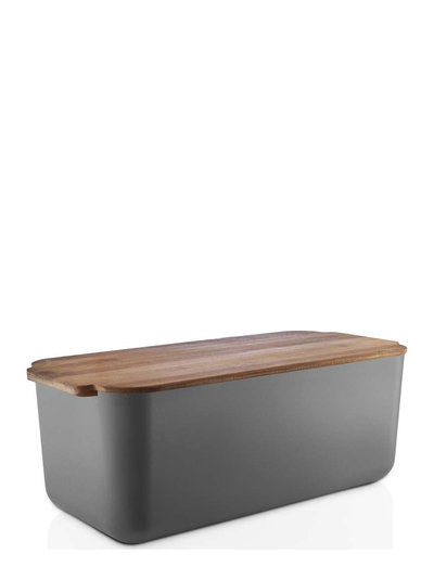 Opbevar dit brød korrekt og hold det frisk længere med en praktisk brødkasse på køkkenbordet. Kassens låg i FSC®️-certificeret karboniseret bambus er samtidig et integreret, robust skærebræt med praktiske riller, der fanger krummerne, når brødet skæres derpå. Selve kassen tåler maskinopvask, men låget skal vaskes i hånden. Fremstillet i kunststof og FSC®️-certificeret karboniseret bambus. Mål: L: 42 x B: 19 x H: 15,5 cm (9 l.).