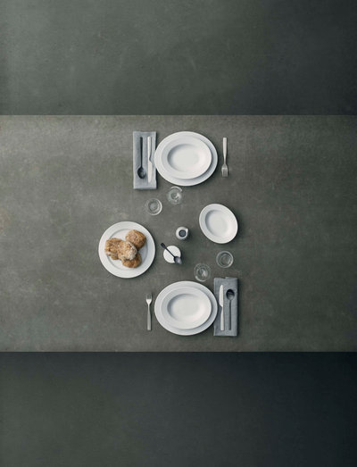 Hvor Legio’s formsprog er absolut minimalistisk, er Legio Nova designet med riller, der raffineret danner rammen om maden. Eva Trio er sponsor af det danske kokkelandshold, og i designprocessen er der fundet inspiration i at se deres madkunst, og den omhu de lægger i deres håndværk. Derfor indrammes tallerkenens midte af elegante riller der fremhæver anretningen.
