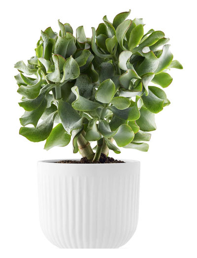 Skulpturel urtepotteskjuler fra Eva Trio Legio Nova er med sin diskrete æstetik som skabt til at fremhæve planter og blomster. Den rillede, delikate dekoration på ydersiden og det enkle design matcher den nordiske boligstil perfekt. Urtepotteskjuleren står smukt alene, men pryder også enhver boligindretning. Nem at rengøre og tåler maskinopvask.