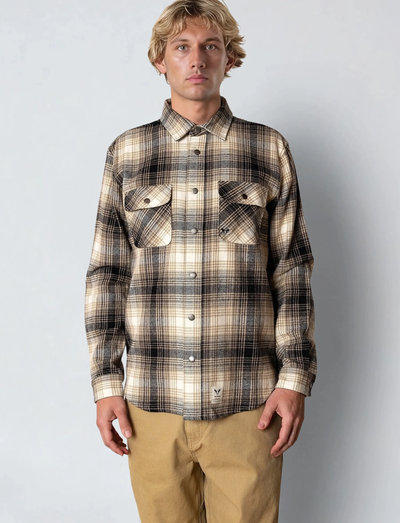 Introducing the Adrian flannel shirt a classic "wood chopper" shirt with a modern twist. Crafted from 100% soft brushed checked cotton (flannel) fabric, this shirt ensures comfort. Its roomy cut allows for a regular fit or you can size up for a more relaxed look. It also sports two front pockets for convenience and stylish push button closure accents. Offers durability with its thicker fabric construction.Model is size L, 187 cm tall.