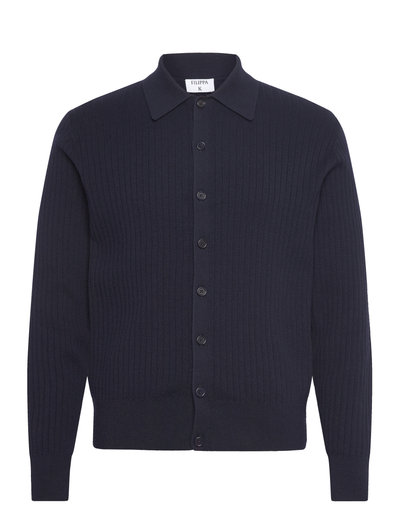 Light shirt knitted in 5x3 rib in cotton merino blend. Milan o knitted collar. Full needle placket with corozo buttons.