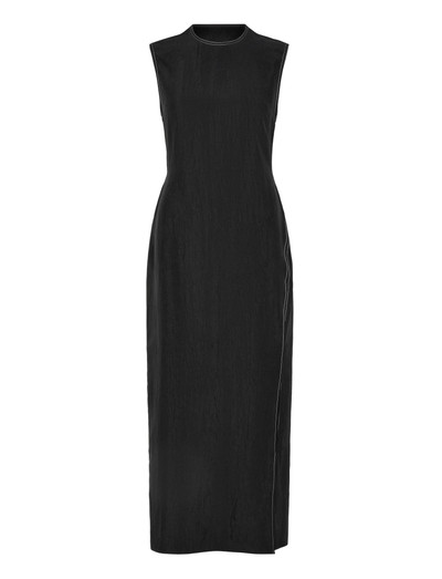 Denne tanktopkjole er designet med en bærestykke-detalje bagpå, hvilket giver en elegant og strømlinet silhuet. Den har elastik i taljen bagpå for en behagelig pasform og en slids i venstre sidesøm for bevægelsesfrihed. Kjolen er uden for.