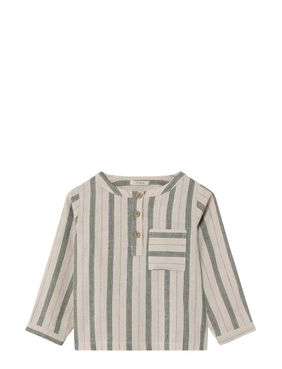 Denne stribede langærmet skjorte er et stilfuldt og komfortabelt valg til børn. Den har en knaplukning og en lomme på forsiden. Skjorten er lavet af et blødt og åndbart stof, hvilket gør den perfekt til hverdagsbrug.
