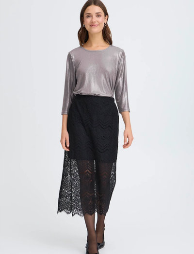 Denne top er fremstillet med en skinnende finish og tilføjer et strejf af glamour til ethvert outfit. De trekvartlange ærmer og den klassiske runde halsudskæring gør den til en alsidig beklædningsgenstand til både dag- og aftenbrug.