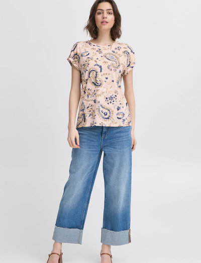 Denne kortærmede T-shirt har et markant, all-over print og en almindelig pasform med en hoftelang længde. Det klassiske design gør den til en alsidig tilføjelse til enhver garderobe.