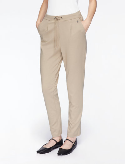 Disse bukser tilbyder en behagelig pasform og har en talje med snøre for justerbarhed. Designet har subtile læg foran, hvilket forbedrer deres afslappede silhuet.