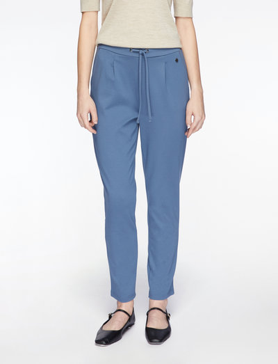 Disse bukser tilbyder en behagelig pasform og har en talje med snøre for justerbarhed. Designet har subtile læg foran, hvilket forbedrer deres afslappede silhuet.